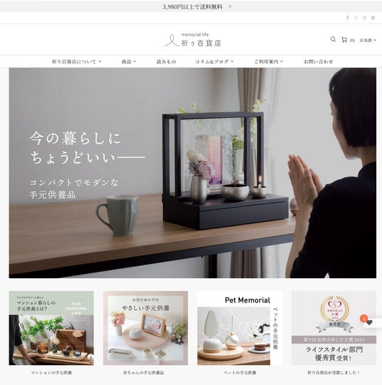 丸喜株式会社(本社:京都市)が運営する、手元供養通販サイト「祈り百貨店」が、新たに「J+B SHOW CASE LAB.」でのテスト販売を開始したことをお知らせします。