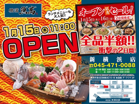 この機会にぜひ「横濱魚萬 新横浜店」でご飲食をお楽しみください。