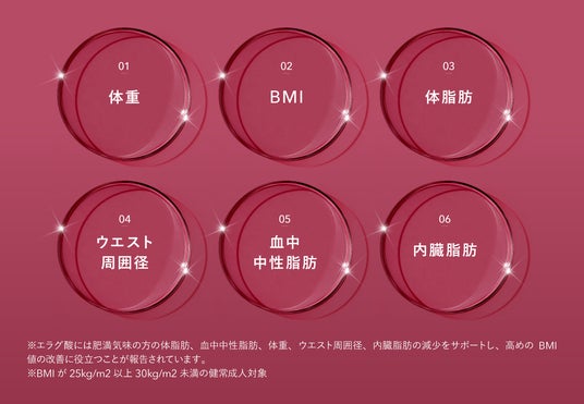 「FUJIMI サプリメント スパークリングサポート」には、ザクロ由来の「エラグ酸」を配合。エラグ酸は、肥満気味の方の体脂肪、血中中性脂肪、体重、ウエスト周囲径、内臓脂肪の減少をサポートし、高めのBMI値の改善に役立つことが報告されています。ファスティングで整えた身体を、科学的根拠に基づいてサポートします。