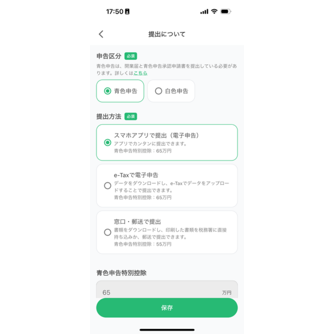 タックスナップで作成した書類は、以下の3つの方法で提出可能です。