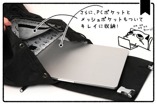 裏地にはまよねこがいっぱいで遊び心満載のリュックです!