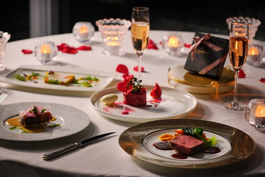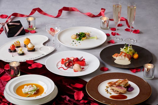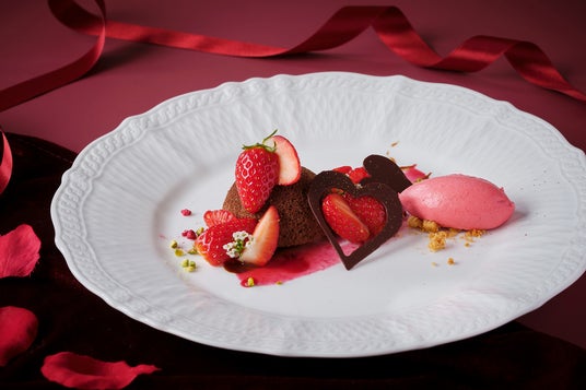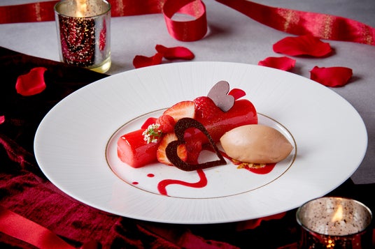 「ファインダイニング ラ・プロヴァンス」では、華やかなシャンパンでの乾杯から始まる、本格プロヴァンス料理をご用意。伝統のブイヤベースや、ショコラソースを添えた京鴨のロティなどをお楽しみいただけます。デザートには、バレンタインにふさわしい情熱の赤が印象的な、濃厚なチョコレートムースをお届け。ラグジュアリーな空間で優雅なひとときをお過ごしいただけます。