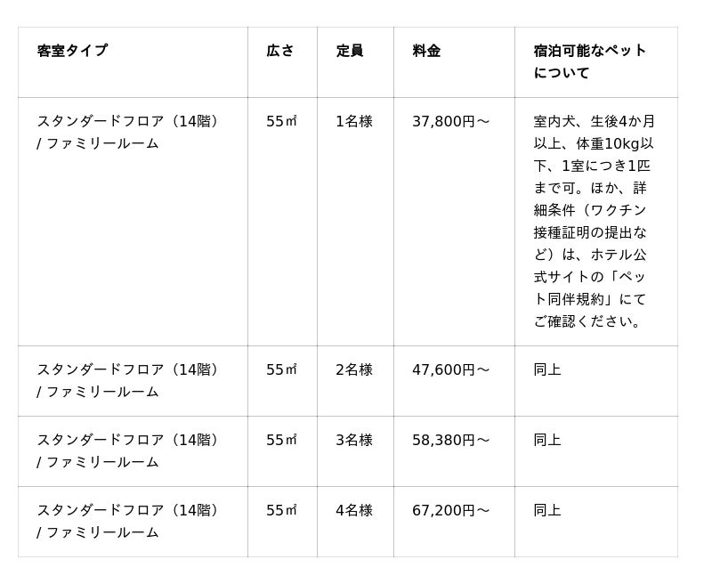 1日1室限定『ペットフレンドリールーム』宿泊プラン概要
