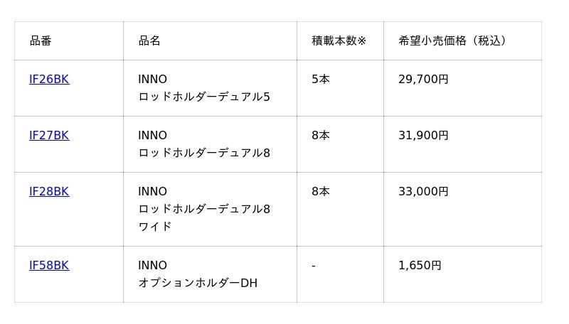 ■INNO ロッドホルダーデュアル(ブラック)近年、内装に黒を用いた上級グレード車が増えている市場背景を受け、ズレが少ないクランプ式ホールドタイプ「ロッドホルダーデュアル」から、ブラック仕様をハイエンドモデルとして12月1日に発売。従来のシルバーカラーよりも内装に馴染み、高級感を演出します。