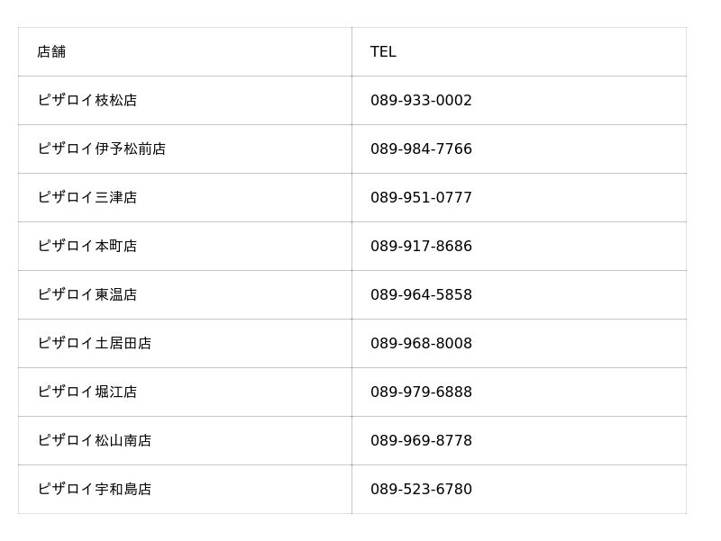 ピザロイ各店へ直接ご連絡ください。
