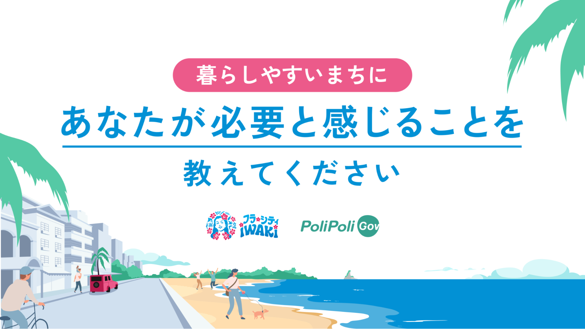 株式会社PoliPoli(所在地:東京都千代田区、代表取締役:伊藤和真、以下 PoliPoli)は、福島県いわき市が実施する「幸福度の高いまちづくり」に関する意見募集に『PoliPoli Gov』が導入されることをお知らせします。