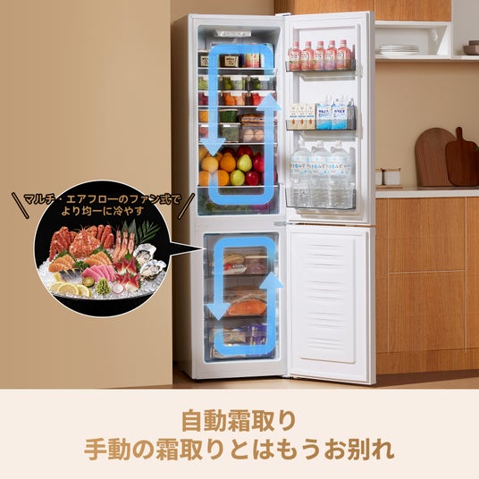 東京、大阪など都市部の暮らしに特化した一人暮らしモデルは冷凍食品をたっぷり収納。インバーター風冷技術搭載で霜取り不要の220Lモデルは、幅482mmの超スリムなボディ設計で扉開閉もスムーズに