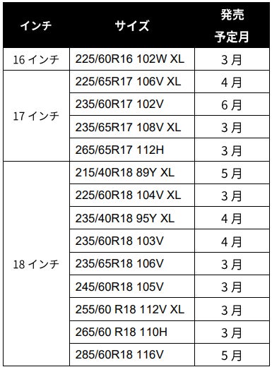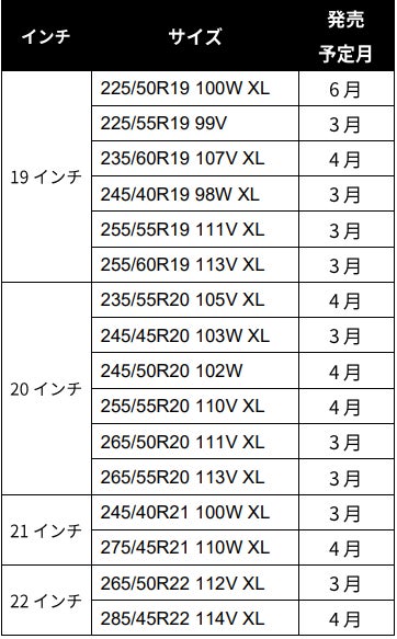 この度のサイズ拡充で、コンパクトカーからSUVまで幅広い車種をカバーすることが出来、より多くのユーザーに、日常の移動から長距離ドライブまでのあらゆるシーンで、プレミアムな乗り心地と確かな安全性を提供します。