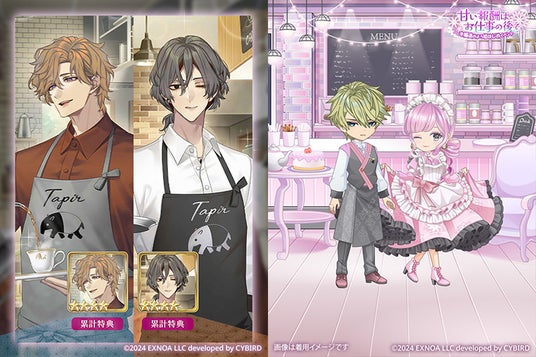 甘い報酬はお仕事の後でイベント称号、桃甘色のシュガーなカフェスタッフコーデ、カフェスタッフのヘアカチューシャ、その他ゲーム内アイテム