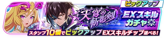 ルシファー(CV:荻野葉月)のイラストを使用したアタッカー専用の「EXスキルチップ」と、シャナオウ(CV:福山潤)のイラストを使用したランナー専用の「EXスキルチップ」がピックアップで登場します。★5は「EXスキルチップ」のみ登場し、次回のイベント開始まで1日1回無料でまわせます。さらに、10連ガチャを2回まで有償ジュエル350個でまわすことができます。