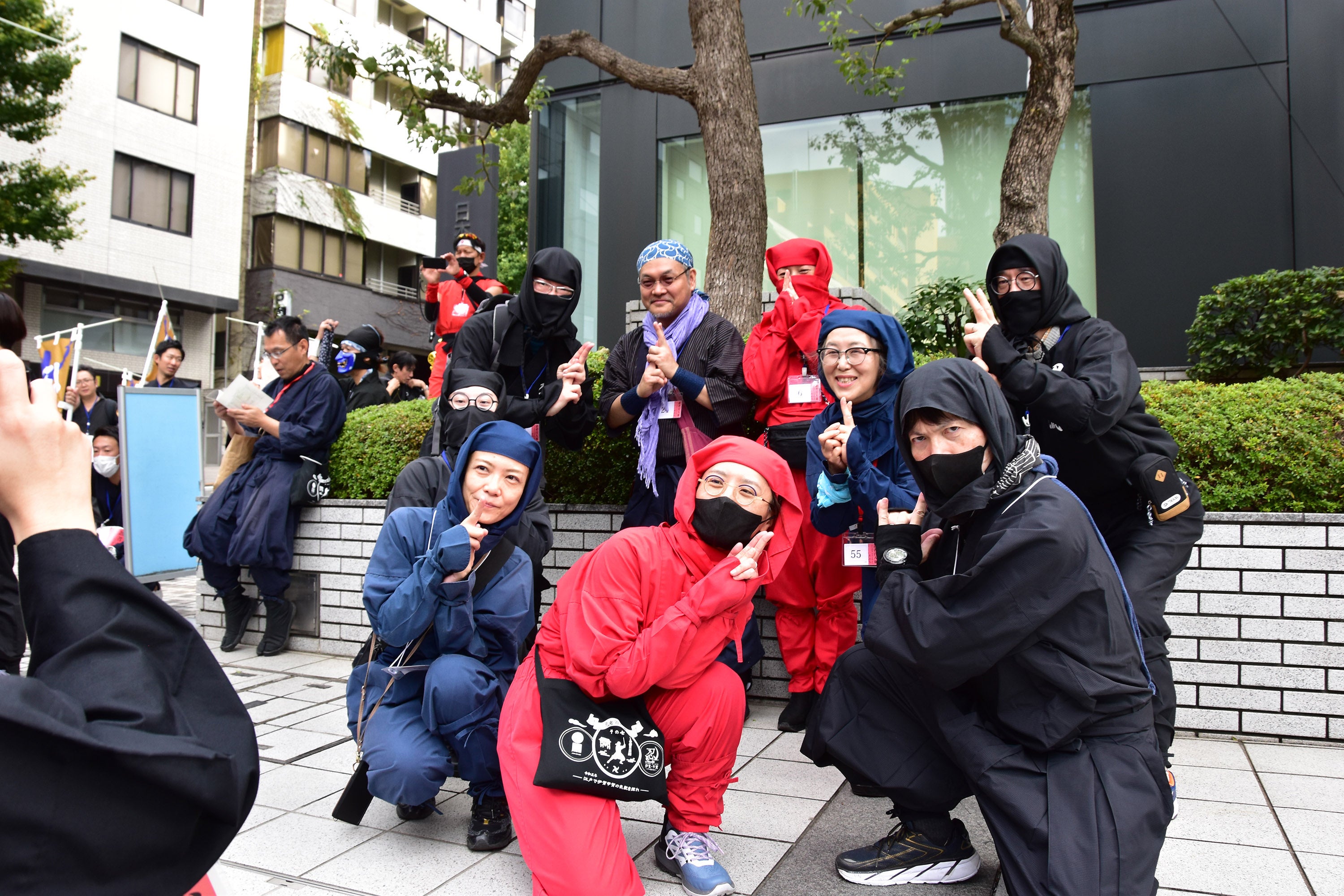 参加者全員が忍者衣装を身にまとい、大阪天満宮を起点にいざ出陣!忍者忍術研究の第一人者である三重大学人文学部の山田雄司教授の案内で、忍者ゆかりの史跡等を巡る約10kmのコースを探索します。