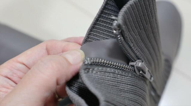 サイドファスナーは内側にあり、くるぶし付近までしっかり開きます。ファスナーが直接肌に触れにくい仕様なので、着脱時もストレスを感じにくい印象でした◎