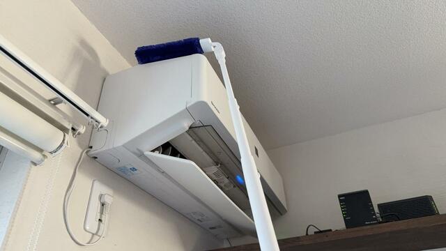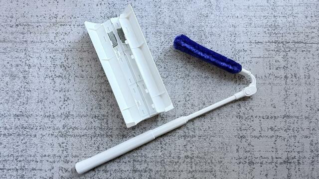 一番長くしたときの柄の長さは約73cm(モップ部分まで入れたときの最長は約97cm)あるので、高い位置の本棚やエアコンの上までこれ1本で対応させられます。