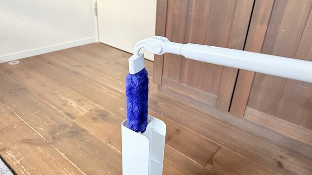 使ったあとは、ケースのほこり取り部分にモップを差し込んでホコリを落とします。差し込んだモップを抜き取ると、ホコリはケースの中に溜まり、キレイな状態になって繰り返し使えるという仕組み。