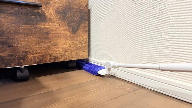 高いところはもちろん、低いところでも大活躍。たとえばこのような掃除機をかけにくい家具と床の隙間にもスルスル入ります。