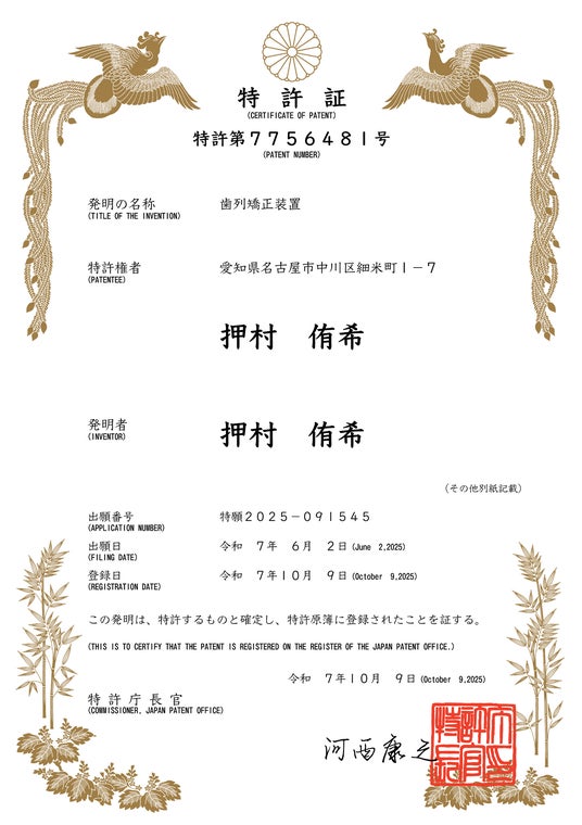 おしむら歯科・こども矯正歯科クリニック(所在地:愛知県名古屋市、院長:押村侑希)は、小児矯正治療に用いる新しい上下顎拡大装置「イージーエキスパンダー」を開発し、特許を取得したことをお知らせします。