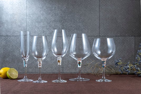 ステム部分の接合部分に用いた、オリジナルの九谷焼のジョイントパーツの絵付けは、熟練の職人が一つ 一つ手作業で行っております。小さなパーツに施され る25種類以上もの繊細な絵付けは、熟練の職人の技術あってなせるものです。 脚の長さや種類、ボウルの大きさなど、ひとつとして同じものが作れない、世界でたったひとつしかないグラスです。一つひとつ異なる表情を見せてくれるリペ アグラスは、特別な日の食卓やパーティにも華を添えてくれます。