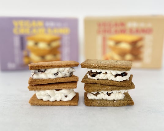 「ブッダ」Veganクリームサンド(ラムレーズン/アールグレイいちじく)各1,501円◎コミュニティパーク◎2月7日(土)~14日(土) 米粉クッキーに植物性クリームを挟んだ優しさ広がるプラントベースのスイーツ。