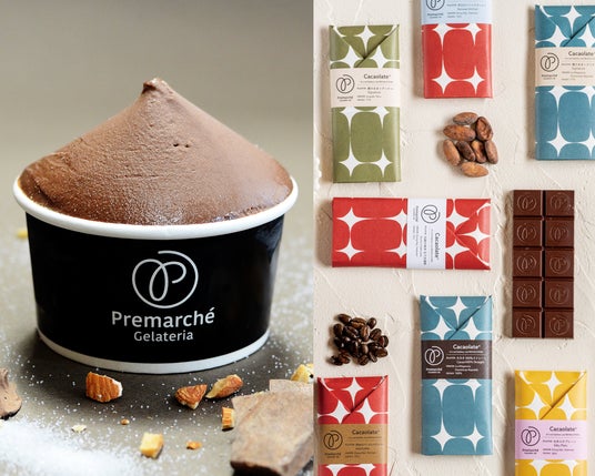 【阪急初登場】「プレマルシェ」自然食屋で培ったノウハウを活かし、からだに優しくおいしいスイーツを提案。店内工房で丁寧に手作りしたビーントゥバーチョコレートや、イートインでは国内外で大人気のジェラートから阪急うめだ本店限定フレーバーが登場します。