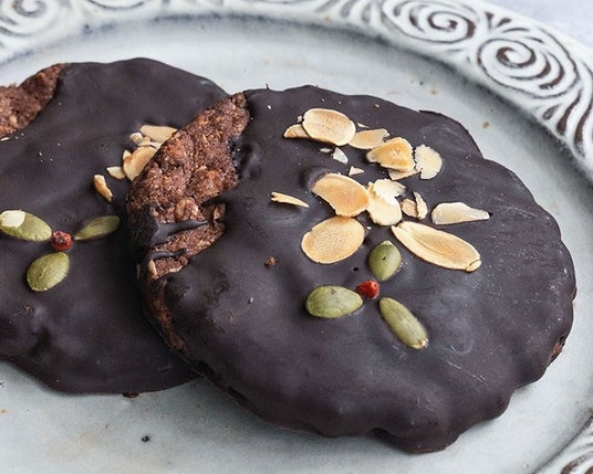 「アトミヨソワカ」ダブルアーモンドチョコレートクッキー571円◎コミュニティパーク◎1月21日(水)~2月1日(日) チョコレート生地にアーモンドを練りこんで焼き上げたクッキーに、さらにチョコをトッピング。