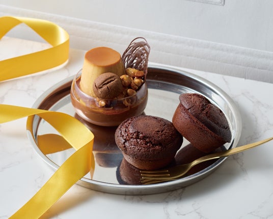 (左)ハニー アラモードプリン(1個入り)881円(右)ハニーカカオ フォンダンマフィン(1個入り)540円(4個入り)2,160円