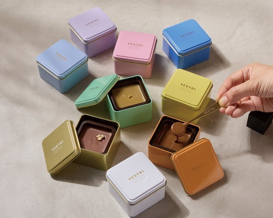 「ヴェストリ」金のスプーンですくって食べる口融けなめらかなチョコレートが人気のイタリアブランド。2026年限定フレーバー“白トリュフ”をはじめ、フレーバーは11種類からお選びいただけます。