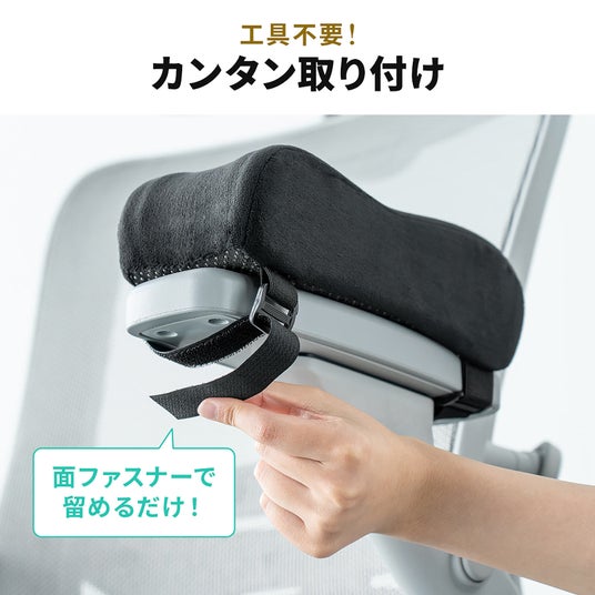 今使っている椅子のひじ掛けに装着するだけで、座り心地をアップデートできる後付けタイプのアームレストです。買い替えの必要はなく、面ファスナーで巻き付けるだけの簡単設計。オフィスチェアはもちろん、ダイニングチェアやゲーミングチェアにも対応し、シーンを選ばず活躍します。