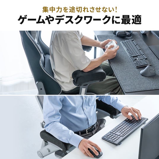ちょうどいい硬さに調整された低反発ウレタンが、腕を置いたときの圧力を分散。肘や前腕への負担を吸収し、長時間作業でもリラックスした姿勢をキープできます。前腕が安定することで、タイピングやマウス操作もスムーズになり、集中力の持続にもつながります。