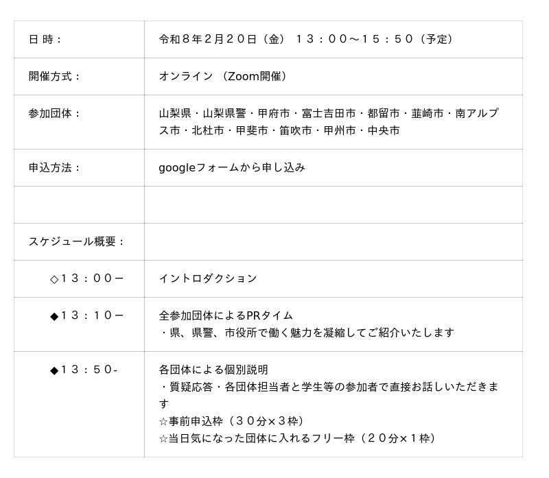 ~ 山梨県庁・県警・県内10市の仕事を一度に知るチャンス! ~