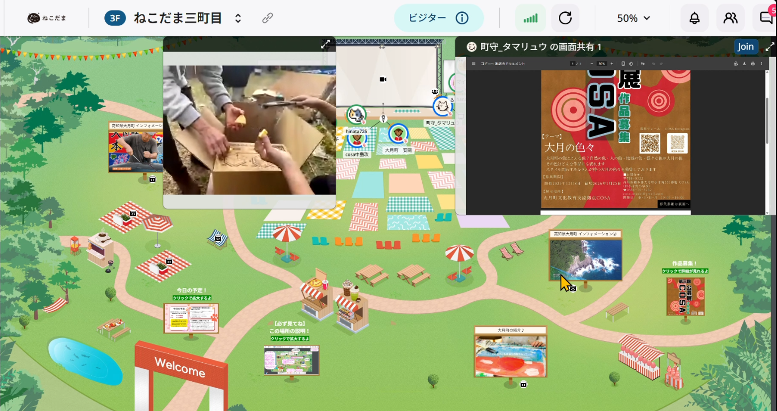 オンライン会場内には、ほかにも大月町の紹介映像やクイズなどのコンテンツも置いていたため、3時間の長丁場でありながら、まちイベント空間を回遊して過ごし、大月町の魅力を多面的に感じていただくことができました。