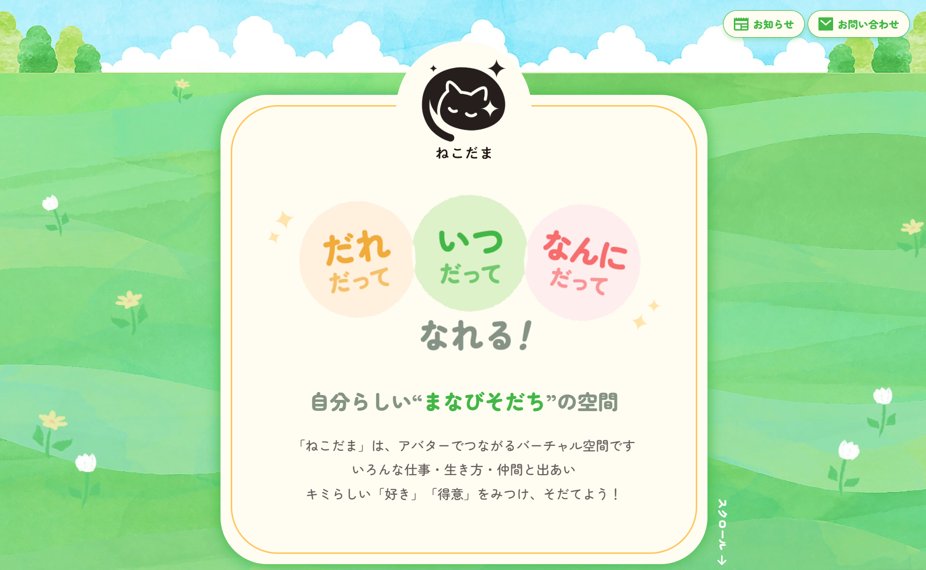 「ねこだま」は、こどもたちの自分らしい”まなびそだち”の空間[小中学生(8歳~15歳)対象・利用無料・オンラインサービス]※ご利用希望の方は、申請フォームよりお問い合わせください(保護者から参加申請フォームよりお申込みいただいた後、アクセス権を付与して以降、お子様ご本人が使える仕様です)