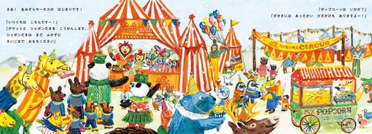 もうすぐ、あおぞらサーカス団のこぐまの初舞台。でも天気はあいにくの雪模様…。サーカス団のみんなは雪空の下でもサーカスができるよう、ドームのように大きなシャボンだまを作ります。