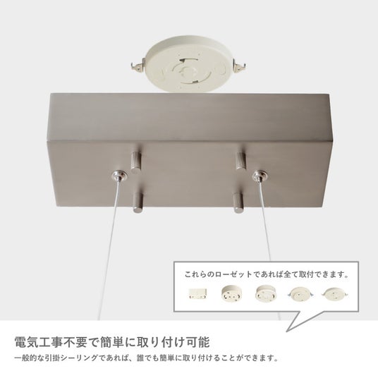 電気工事不要。どんな住まいにも、すぐに取り入れられるユネルロープペンダントランプは、ロープライトなのに特別な電気工事を必要としない仕様。一般的な引掛シーリングに対応しており、賃貸住宅を含むどんな住まいでも、空間の雰囲気を大きく変える照明体験を手軽に取り入れることができます。ダイニング、リビング、吹き抜け、階段空間など、住まいの中で“光の印象を変えたい場所”に柔軟に対応します。