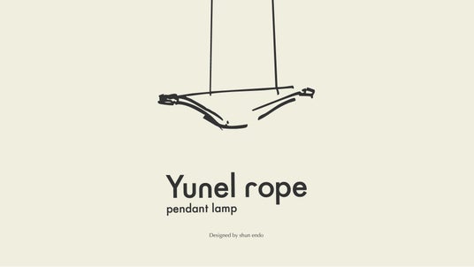 デザイナー shun endoYunel ropeは、「照明を“面”ではなく“線”として捉える」ことから発想しました。ロープという素材が持つ、柔らかさや不均一さをそのまま活かし、空間に自然なリズムが生まれるようにデザインしています。点灯していない時でも存在感があり、灯すことで初めて完成する。そんな“時間によって表情が変わるあかり”として、暮らしの中で長く楽しんでいただけたら嬉しいです。