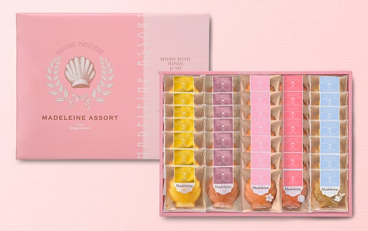 内容:いちごマドレーヌ・ももマドレーヌ 各2個、バターマドレーヌ・さくらマドレーヌ 各1個