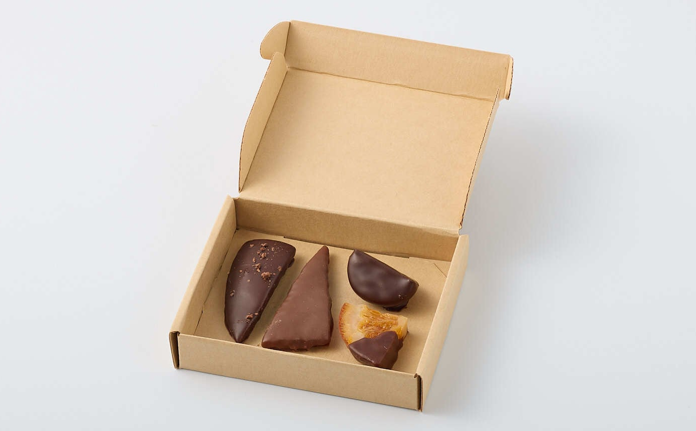 静岡県産の柑橘と、自家製チョコレートを組み合わせた、オランジェットのアソート。