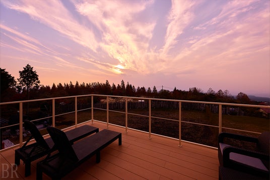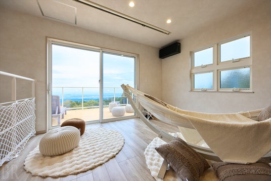 吉無田高原に位置する「Tsuki Akari-月燈-」からは、熊本市街や有明海、雲仙岳などの熊本を代表する美しい景色を一望できます。2階のテラスからはもちろん、大きな窓を設けた室内からも、まるで絵画のように広がる熊本の大パノラマをお楽しみいただけます。