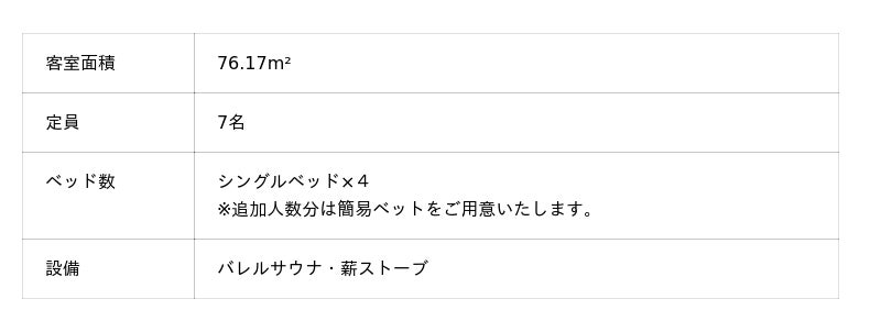 完全プライベートな空間のため、周囲を気にすることなく、セルフロウリュや高原の澄んだ空気に身を委ねる外気浴をお楽しみいただけます。