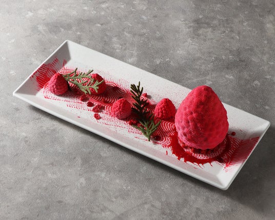 今回登場するのは、フランボワーズをモチーフにしたムースとボンボンショコラを組み合わせた、バレンタインならではのデセール。