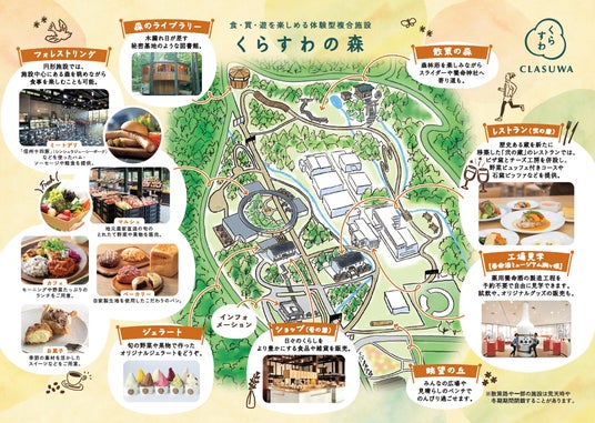 ●くらすわの森 とは2024年10月に長野県駒ヶ根市にグランドオープンした体験型複合施設。ライフスタイルブランド「くらすわ」の考える“すこやかなくらし”を豊かな自然のなかで体験いただける多彩な施設を備えています。