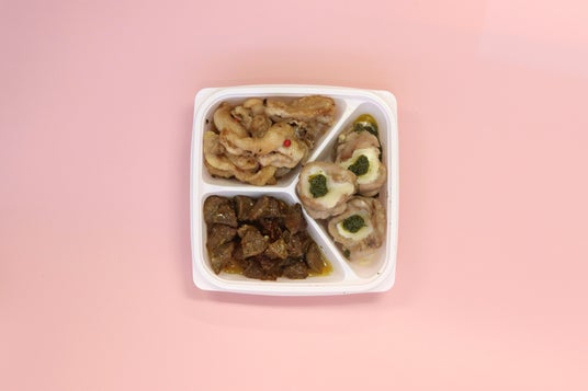 食べる際の煩わしさや食事後のゴミを減らせるよう、間仕切りのカップやフィルムなどの食べられないアイテムは不採用に。「自分が嬉しい惣菜セットを」との考えから、かさを増すための食材もあえて入れず、容器いっぱいにたっぷりと惣菜を詰めています。