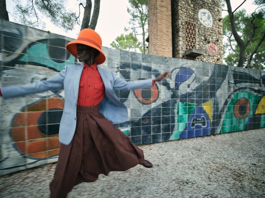 鮮やかな色彩と軽やかな動きで、メゾンの春夏コレクションのワードローブをまとったモデルのジャッキー・フーパー、ロン・リー、ヴァスコ・ルイクス、アワー・オディアング、ビンクス・ウォルトンが、壁や庭園を彩るアート作品からインスピレーションを得ながら館内を散策します。シャガールのフレスコ画やジャコメッティの彫刻の間、ミロの迷宮の中、芸術家の遊び心あふれる噴水のそば、あるいは財団のプライベートライブラリーの中で、2026年春夏コレクションは芸術の生き生きとした質感と呼応しています。