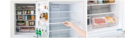 冷蔵室容量は204L。高さの調節可能なガラス棚やチルドルームも備えており、使い勝手を高めています。