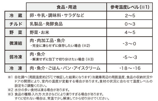 (※1)氷ができるまでの時間の目安:周囲温度32℃、温度レベル「中」、モード設定「なし」で庫内が十分冷えた状態でドアの開閉をしない場合の目安。