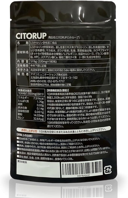アバコミュニケーションズ株式会社(本社:北海道札幌市)は、ビジネスアスリートのパフォーマンス維持をサポートする、L-シトルリン・L-アルギニン配合の栄養機能食品(亜鉛)「CITORUP(シトループ)」を、2026年1月7日(水)よりAmazon.co.jpにて販売開始いたしました。