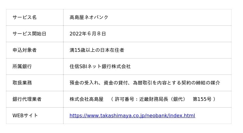 高島屋ネオバンクの概要