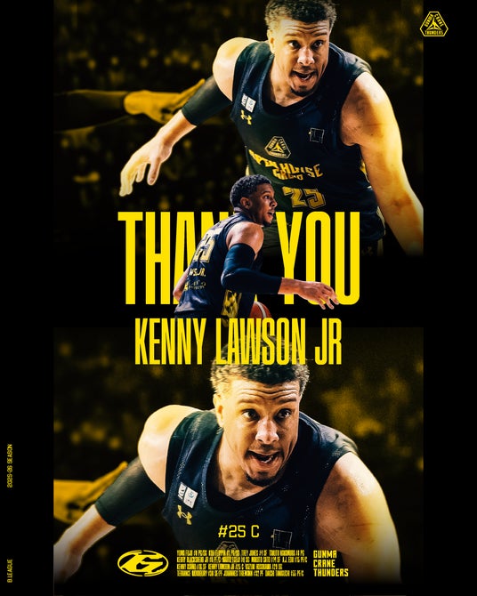 「このたび、ケニー・ローソン・ジュニア選手は、契約期間満了に伴い群馬クレインサンダーズを退団することとなりました。在籍期間中、ローソン・ジュニア選手は常にポジティブな姿勢でチームに向き合い、周囲の選手を鼓舞するとともに、自身がこれまで培ってきた貴重な経験を私たちに共有してくれました。