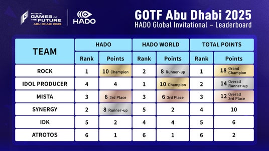 激しい戦いを経て、最終結果は以下の通りとなった- 総合優勝(Grand Champion):韓国代表 ROCKHADO 優勝 + HADO WORLD 準優勝累計ポイント:18 点