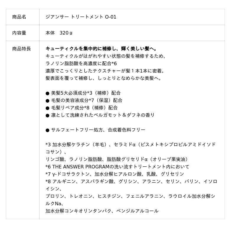 トリートメントは、髪のダメージリスク別に2種類を開発。「インナーリスク」向けには髪の内部脂質に着目し、髪内部を集中的に補修することで、芯まで美しい髪へと導く「I‐01」、「アウターリスク」向けにはキューティクルを集中的に補修し、輝く美しい髪へと導く「O‐01」をそろえました。
