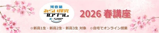 学校法人河合塾は、2026年2月から3月にかけて、全国の新高1~3生を対象に、「みらい探究プログラム K-SHIP」をオンラインで開催します。新年度を迎えるこの春は、英語・数学・現代文の教科講座をはじめ、中高生が学問への興味・関心を広げ、深めることができる11講座をご提供します。